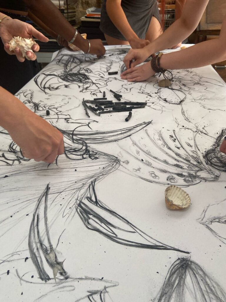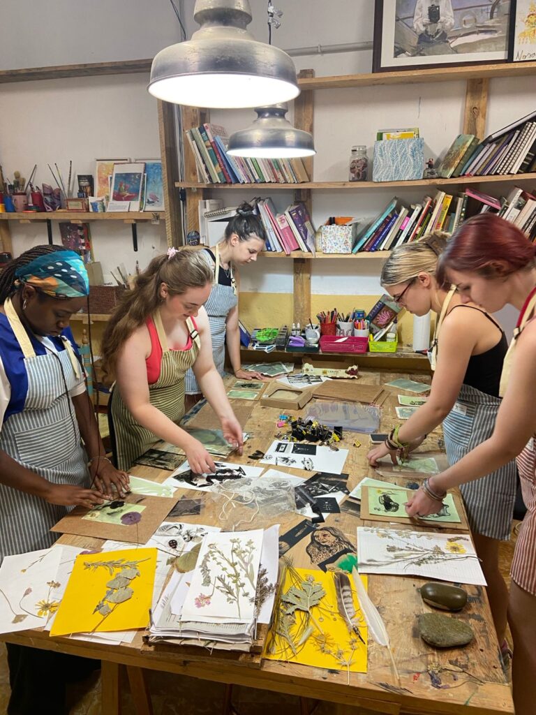 Under the guidance of Sarah Misselbrook, students experimented with natural and found materials from The Valley olive finca, creating sculptural bundles and object compositions. Observational drawings incorporated innovative techniques such as non-dominant hand sketching, sensory drawing, and collaborative exercises.
